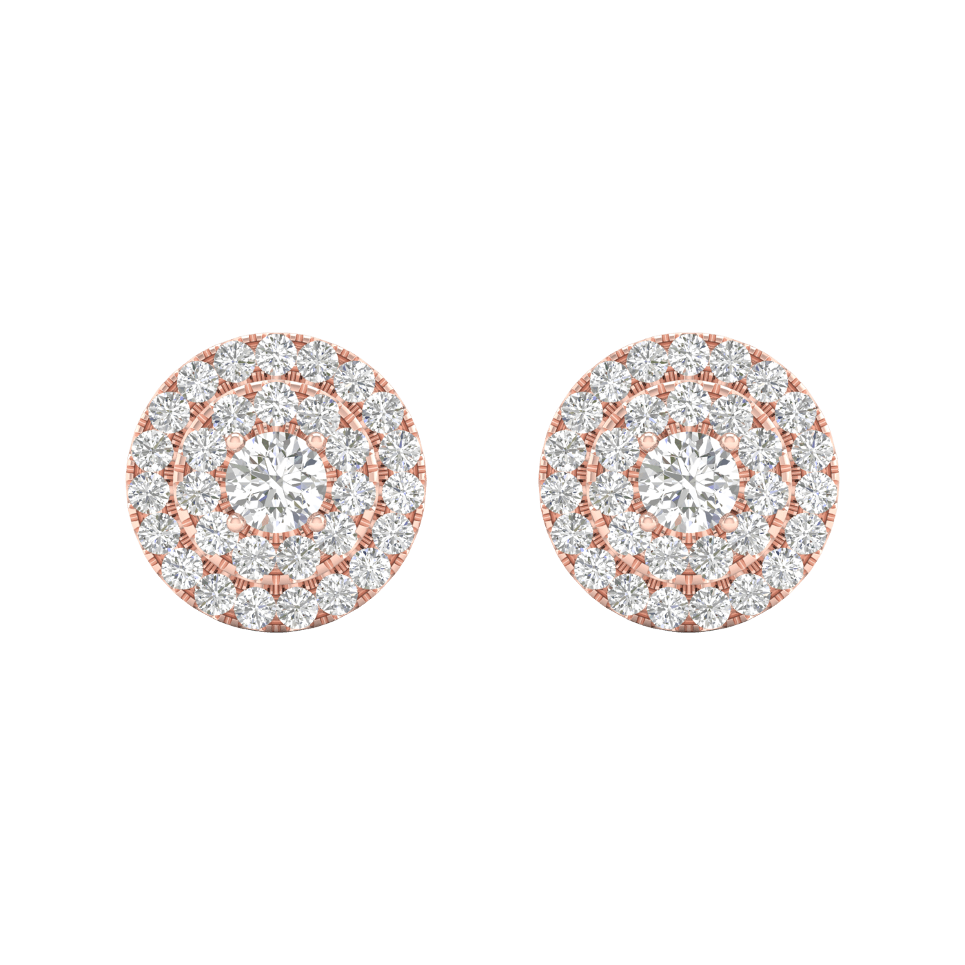 Each earring features a round center diamond bordered with a double frame of smaller round accent diamonds. A fabulous traditional look. The post earrings secure comfortably with friction backs.